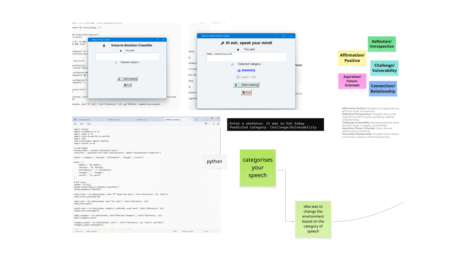 The journey wasn’t easy. I had so much research that I didn’t know where to start, and it took countless prototypes to turn ideas into something real. But once I stopped overthinking and started making, clarity followed. The concept stayed the same, but the form evolved — from a voice-reactive VR environment to a more grounded, voice-driven experience built for accessibility. Each test, even the rough ones, taught me something new. This project helped me let go of perfectionism and trust the process. I learned that good design comes from iteration, not certainty — and that to make something good, you have to make something bad first.